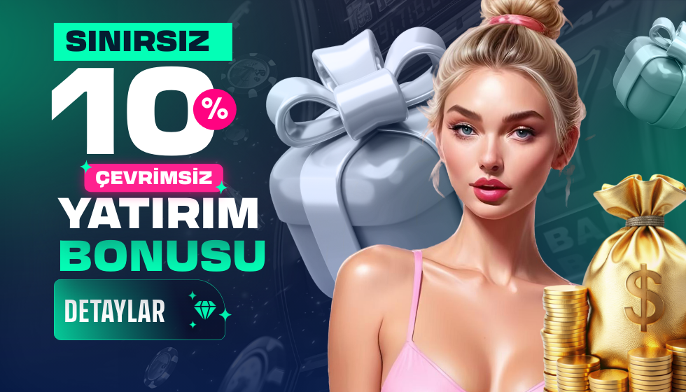 • %10 Yatırım Bonusu, KolayPay Kredi kartı harici tüm yatırım yöntemleri için geçerlidir. • %10 Yatırım bonusunun çevrim şartı bulunmamaktadır. Anapara katılım şartını gerçekleştiren kullanıcılar çekim talebi oluşturabilir. • %10 Yatırım bonusunun anapara katılım şartını tamamlamak için; - Spor bahislerinde birden fazla müsabaka içerisinde her bir karşılaşmanın minimum 1.30 orandan yatırım + bonus miktarının 2 katı kadar bahis yapılmalıdır. Eğer kullanıcı toplam bakiyesinin yarısı veya daha fazlası ile tek bahis oluşturmuşsa, toplam bakiyesinin üç (3) katı kadar oyunlara katılımı gereklidir. - Canlı Casino ve Slot Oyunlarında yatırım + bonus miktarı 2 katı kadar oyunlara katılınmalıdır. ( Kırmızı Siyah, Tek Çift, Oyuncu ve Krupiye gibi Bahislerin Tamamına Oynanan veya Rulet Oyunlarında Tüm İhtimallere Alınan Bahisler ve Sanal Rulet , Sanal Blackjack masalarında Geçerli Değildir. Rulet Oyuncuları İçin Maksimum Sayı Limiti 17' dir. ) - Diğer ve Uçan Oyunlar kısmında yatırım + bonus miktarının 2 katı kadar oyunlara katılmalıdır. Uçan Oyunlarda kullanıcıların katılım esnasında minimum 1.40 çarpanı kullanmaları gerekmektedir. - Poker Lobby'sinde 1 TL üstü masalarda minimum 200 el oyunlara katılım sağlanmalıdır. • %10 Yatırım bonusundan bir üyenin gün içerisinde alabileceği maksimum bonus miktarı SINIRSIZ'dır. Her yatırımında alabileceği maksimum bonus miktarı 10.000 TL'dir.. • %10 Yatırım bonusundan faydalanan kullanıcının bonusu çekebilmesi için çekim talebi yatırım miktarının en az 2 katı olmalıdır. • %10 Yatırım Bonusu ile maksimum bonusun 200 katı kadar çekim işlemi gerçekleştirilebilir. • %10 Yatırım bonusundan faydalanıp olası kayıp yaşamanması durumunda %15 Kayıp Bonusundan yararlanılabilir.