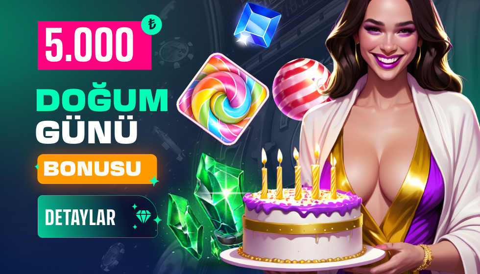 • Bonustan yararlanabilmek için doğum gününüz içerisinde dilediğiniz saatte canlı destek ekibimize bağlanarak talep etmeniz gereklidir. Doğum günü öncesi veya sonrasında gerçekleştirilen talepler dikkate alınmayacaktır. • Bonus miktarı talep etmiş olduğunuz son 1 yıl içerisindeki yatırımlarınız baz alınarak hesaplanmaktadır. 1.000 TL – 4.999 TL Yatırımı Olan Üyelerimize ; 250 TL 5.000 TL – 9.999 TL Yatırımı Olan Üyelerimize ; 500 TL 10.000 TL – 49.999 TL Yatırımı Olan Üyelerimize ; 750 TL 50.000 TL – 99.999 TL Yatırımı Olan Üyelerimize ; 1.000 TL 100.000 TL – 249.999 TL Yatırımı Olan Üyelerimize ; 2.500 TL 250.000 TL ve Üzerinde Yatırımı Olan Üyelerimize ; 5.000 TL • Bu promosyondan yararlanabilmek için site üzerinde doğum gününüzden önce toplamda minimum 1.000 TL yatırım yapmış olmanız gerekmektedir. • Bonus kampanyamızdan yararlanabilmeniz için kimlik doğrulama işlemini gerçekleştirmeniz gereklidir. • Doğum günü bonusu ile maksimum 10 katına kadar kazanç sağlanabilir. Kalan bakiye çekim işleminde sıfırlanır. • Doğum günü bonusunun herhangi bir çevrim şartı yoktur.